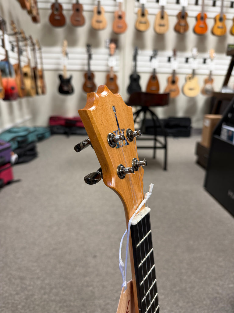 The first time you strum a KoAloha ukulele you realize why KoAloha is one of the best ukulele builders in the world. They are simply amazing instruments and they never stick around very long when KoAloha has them in stock. The tone and playability of this uke is simply incredible as the notes just seem to jump off the fretboard effortlessly. Chords are also easily strummed as the action is nice and friendly. Solid Koa/Mango body, Tusq nut and saddle, Paua abalone inlays. Famous KoAloha tone. Aloha !!