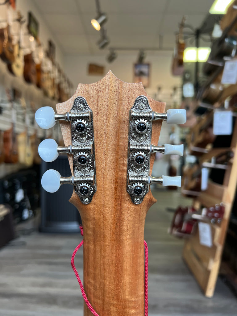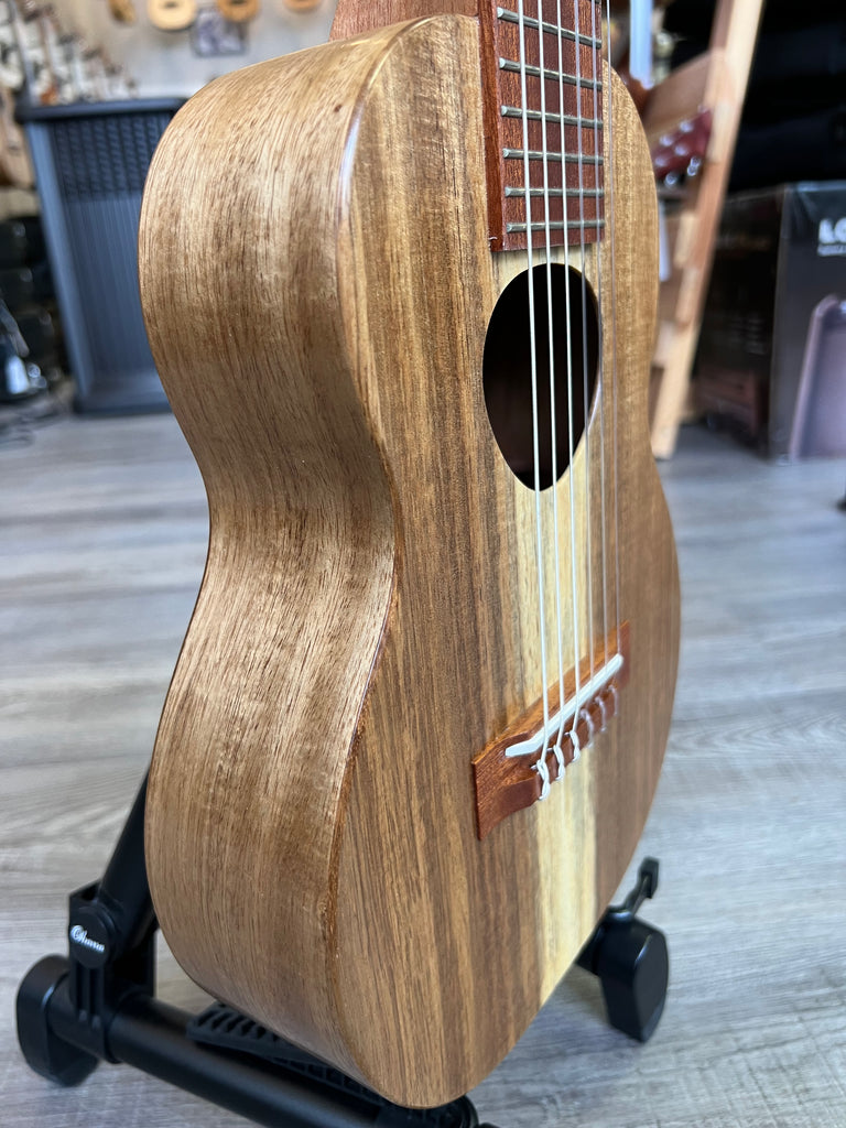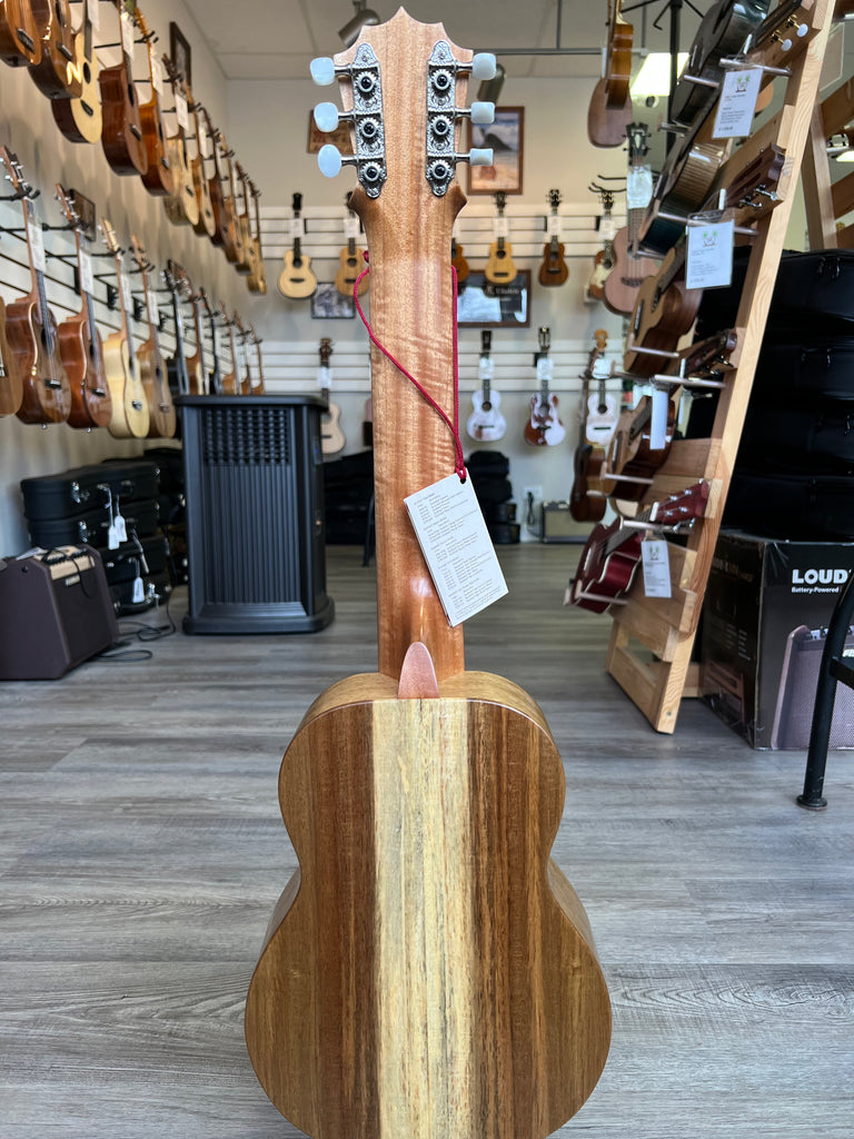 This amazing instrument comes from the good folks at KoAloha. This Opio model features an all solid tropical acacia body. The Guitalele, Guilele or Guitelele is a 6-string instrument that is played like a guitar but is tuned A to A which gives it a higher ukulele-like pitch. It's super easy and a ton of fun to play!
