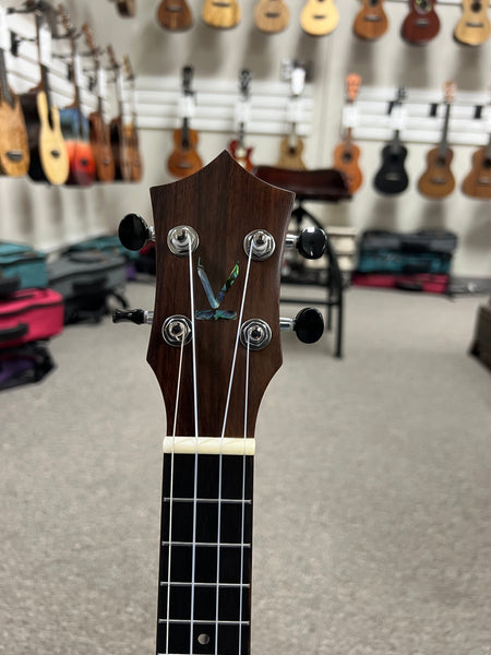 Absolutely beautiful Kumu concert sized ukulele. This uke is made from spalted mango wood and features a nice semi gloss finish. The abalone soundhole design is super cool looking and the black binding and tuning key buttons add a nice touch of class.