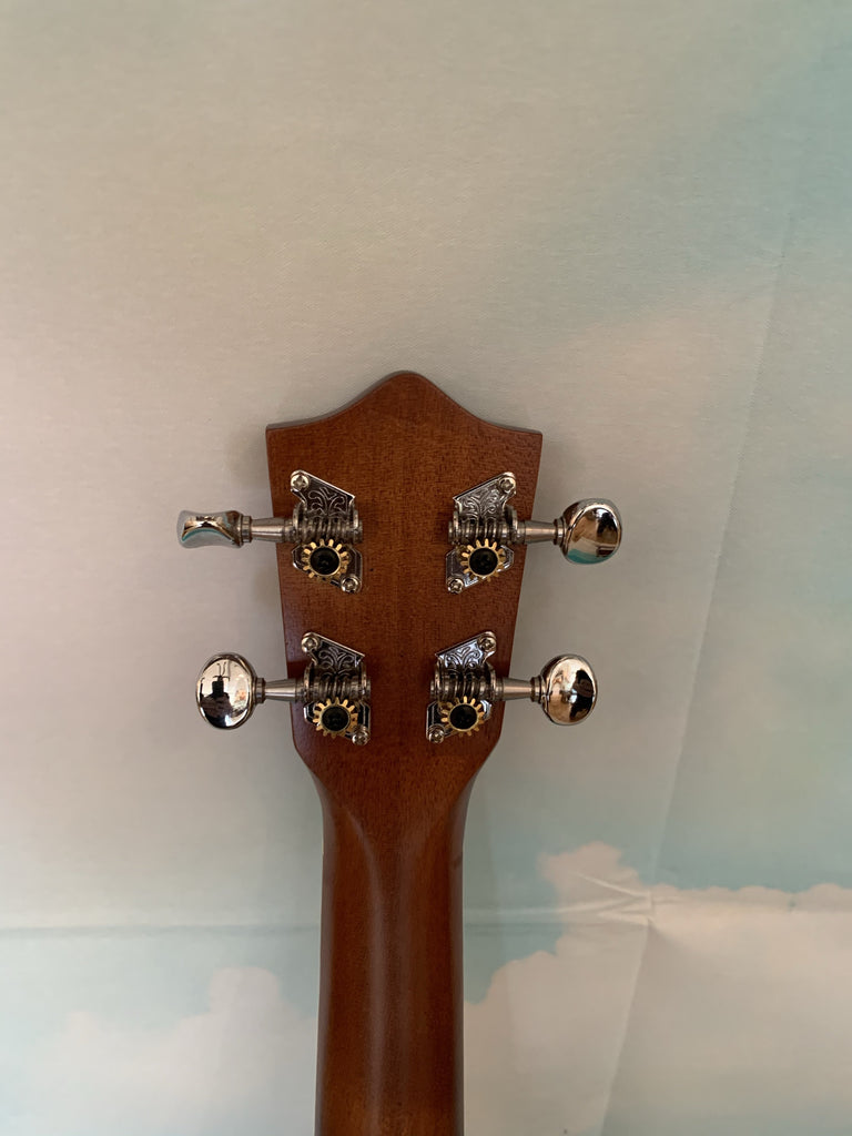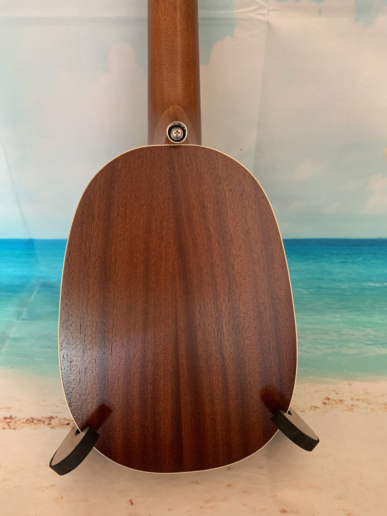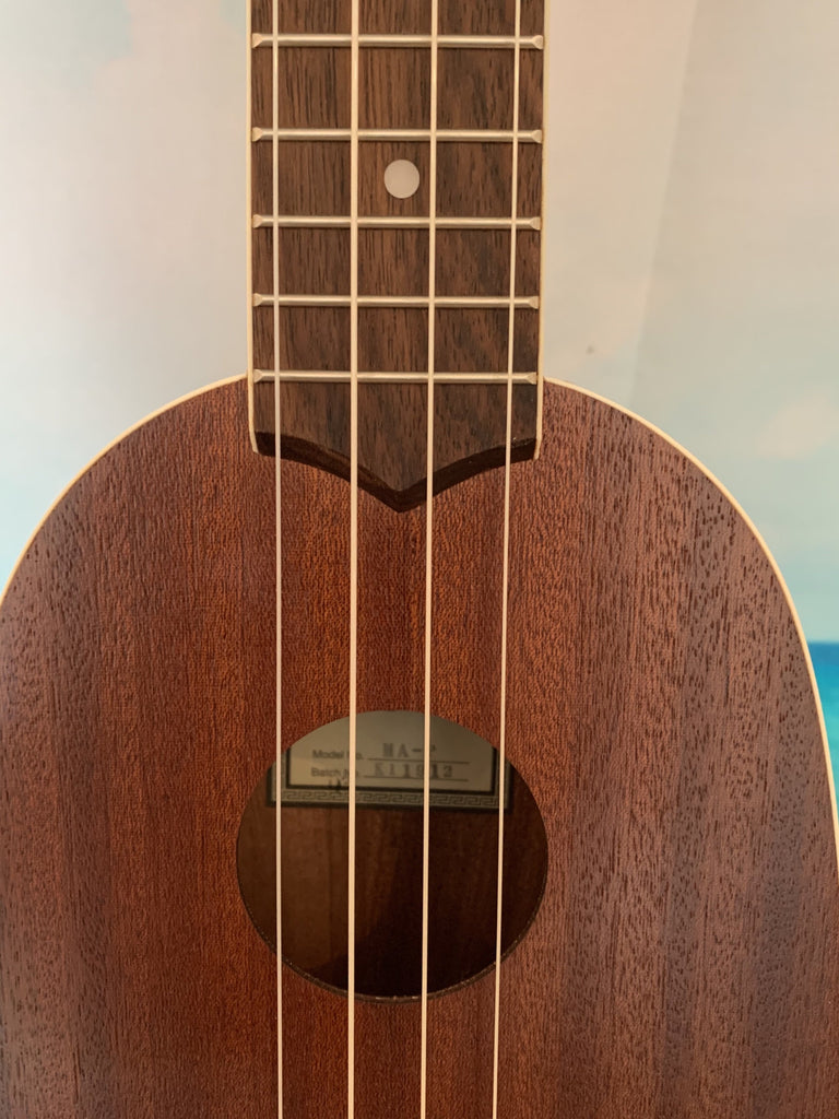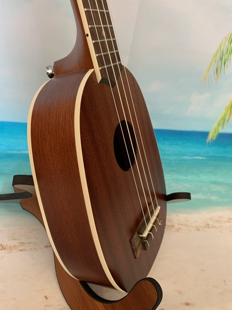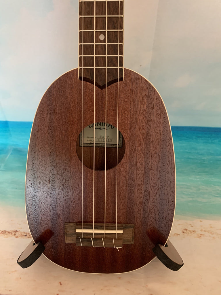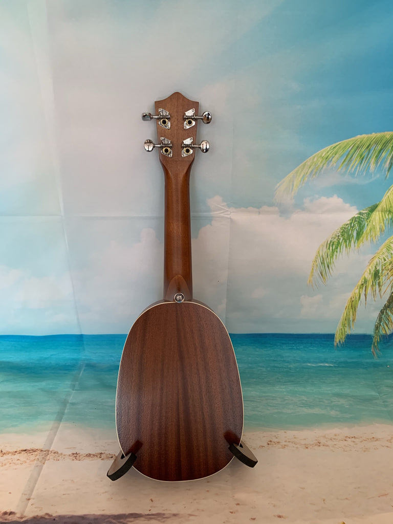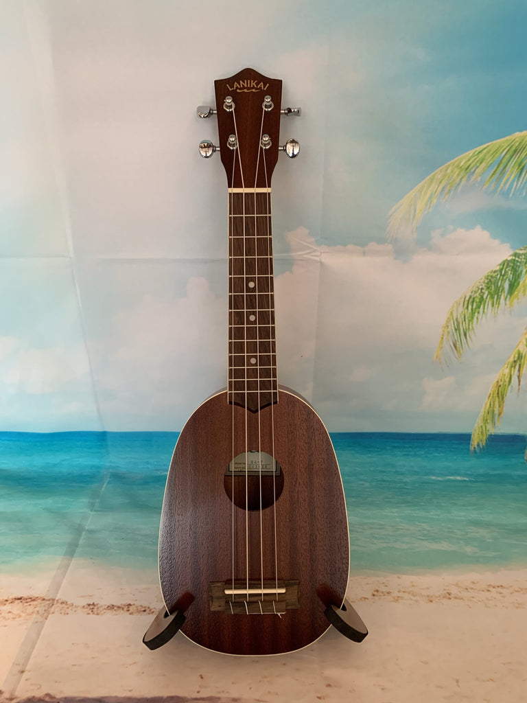 This Lanikai pineapple uke is a ton of fun to play. With it's mahogany body and white binding it has a great classic look. It also has a nice sound thanks in part to its satin finish. Comes with a Lanikai gig bag. Aloha !!
