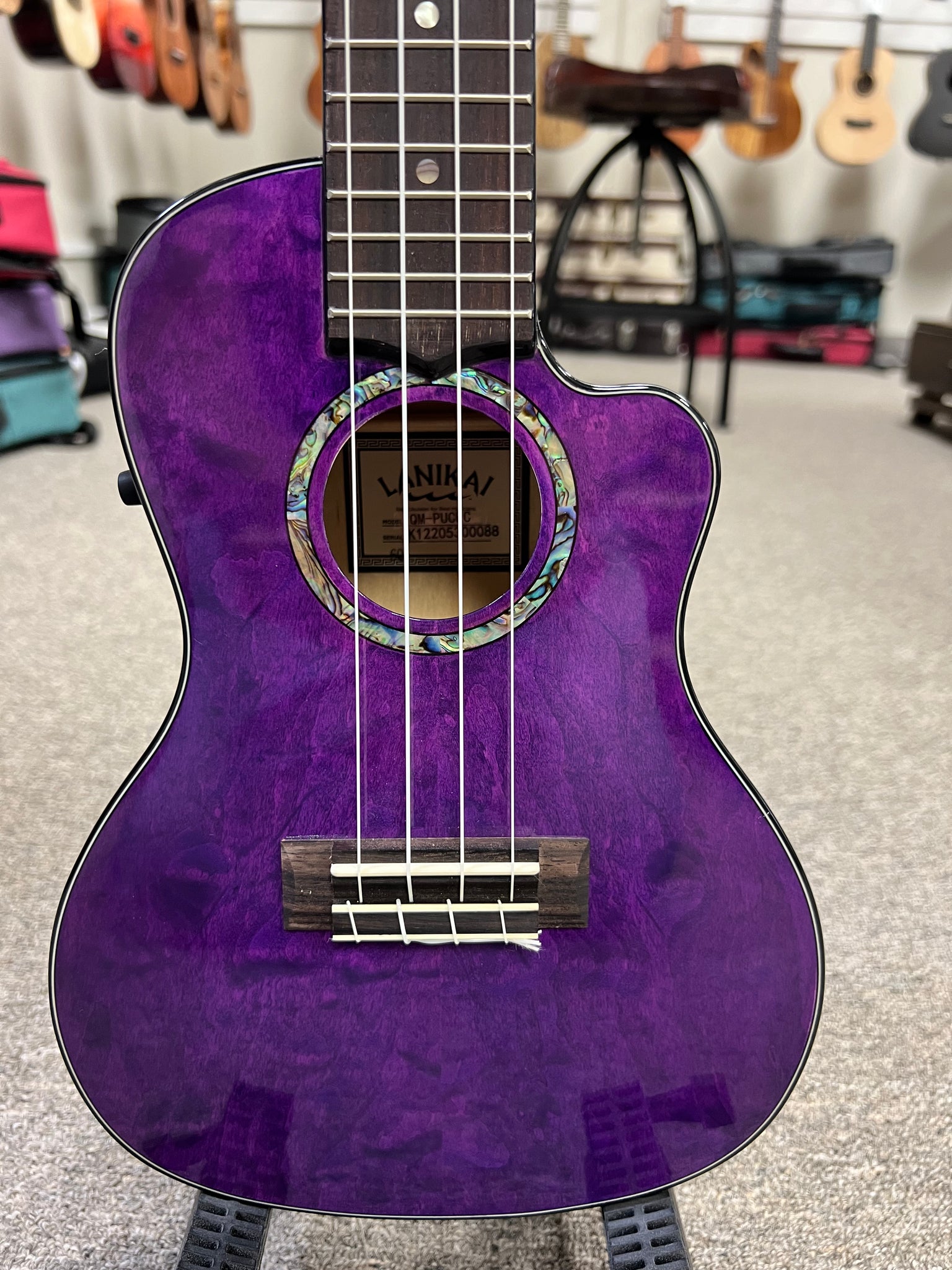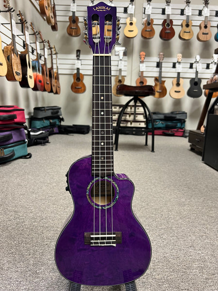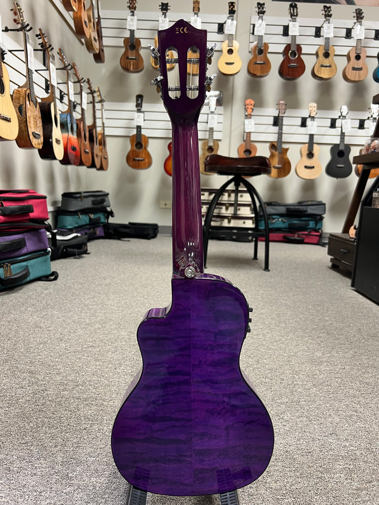 LANIKAI QM-PUCEC Quilted Maple Electric Concert Ukulele w/Case - Transparent Purple