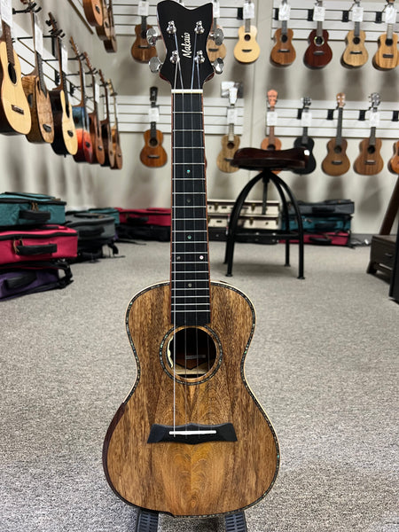 The Makaio MSMC-20E Solid Spalted Mango Electric Concert Ukulele is a beautifully crafted instrument that combines exceptional playability with stunning aesthetics. Designed by Matt Cantlon of Aloha City Ukes, this ukulele is part of Makaio's 20 Series, which is renowned for its solid wood construction and thoughtful design elements.