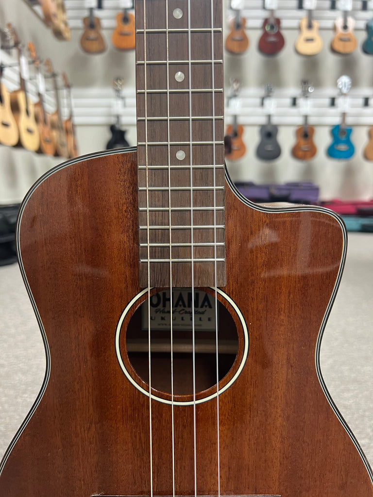 Ohana BK-35GCE Solid Mahogany Electric Baritone Ukulele - Cutaway