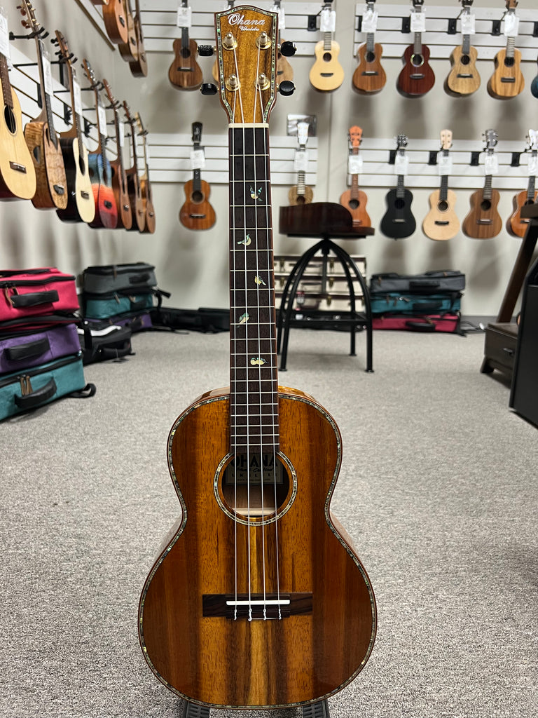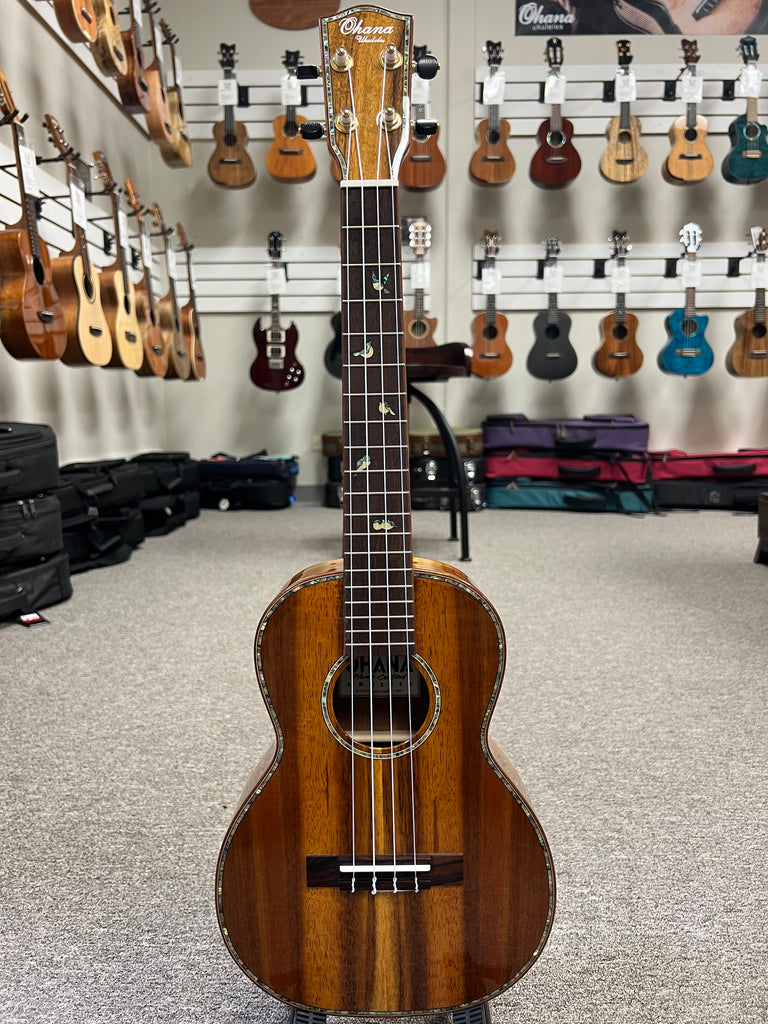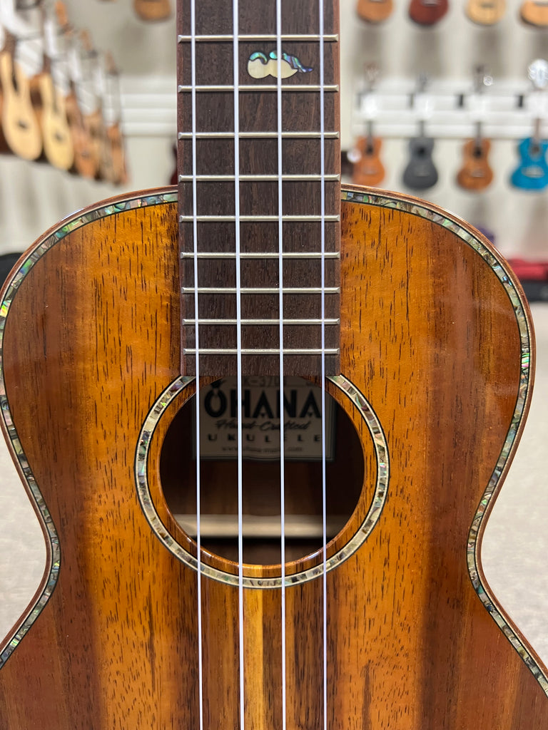 OHANA TK-370G Solid Koa Tenor Ukulele w/Case - Bird Inlays