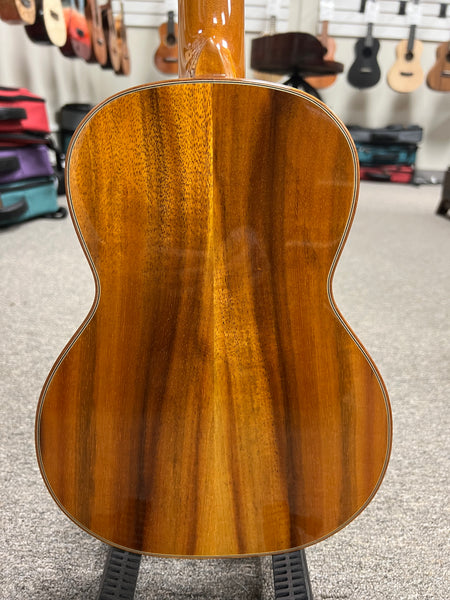This Ohana tenor is one great sounding and looking uke! All solid wood construction consists of beautiful Hawaiian koa wood for the top, back and sides. It's rich in sustain with a great mid range. The abalone soundhole rosette along with the mahogany binding add a nice touch of class. Aloha !!