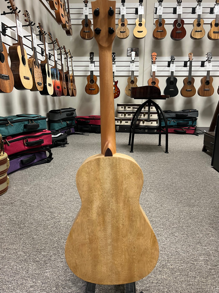 Physically, the ukulele is finished in a tactile satin finish on both body and neck, which not only gives it a refined, understated elegance but also feels comfortable and natural in the hands. The neck is crafted in a medium “C”-shape profile with a radius fretboard — a shape many players find ergonomic and smooth under the fingers, whether strumming or finger-picking.