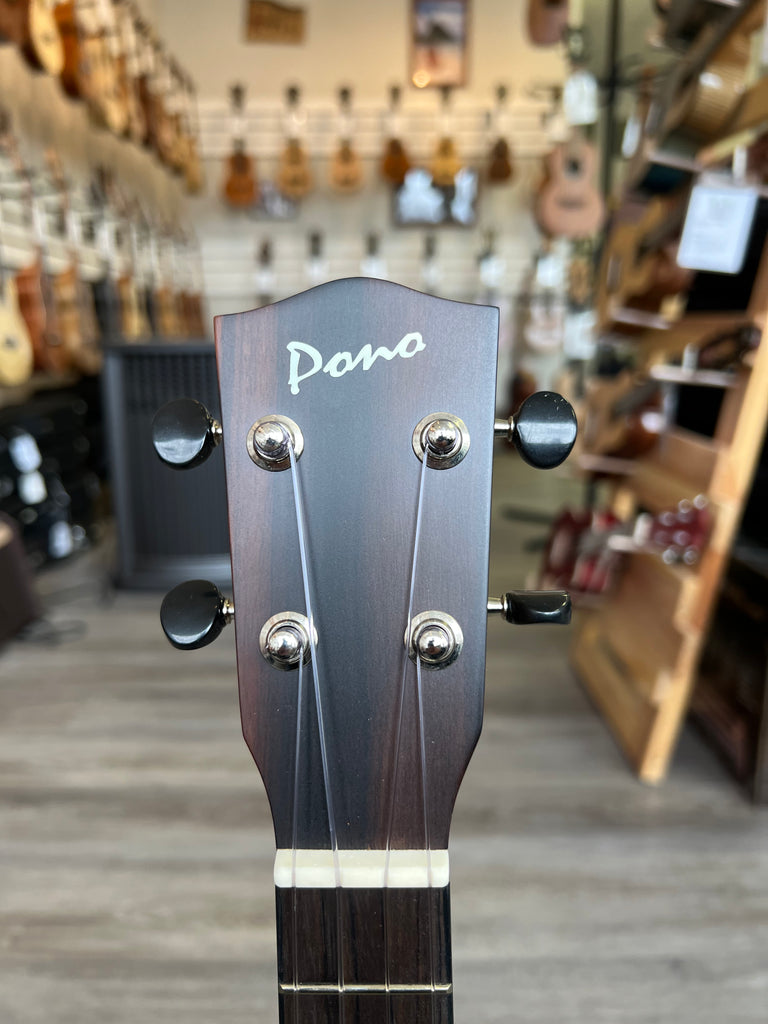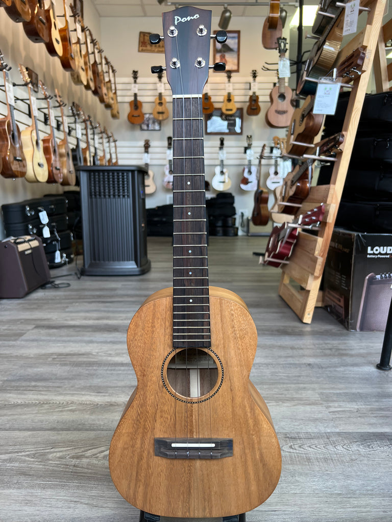 Aloha City Ukes is happy to be carrying Pono ukuleles. These are very high quality ukuleles made under the Ko'olau name with their designs. The AT-Tenor is an all-solid acacia wood tenor ukulele with a satin finish. The tone is sweet and the playability is superb. The Pono tenor and baritone ukuleles also come equipped with a dual-action truss rod which makes it easy to adjust the neck as climates change. Aloha !!