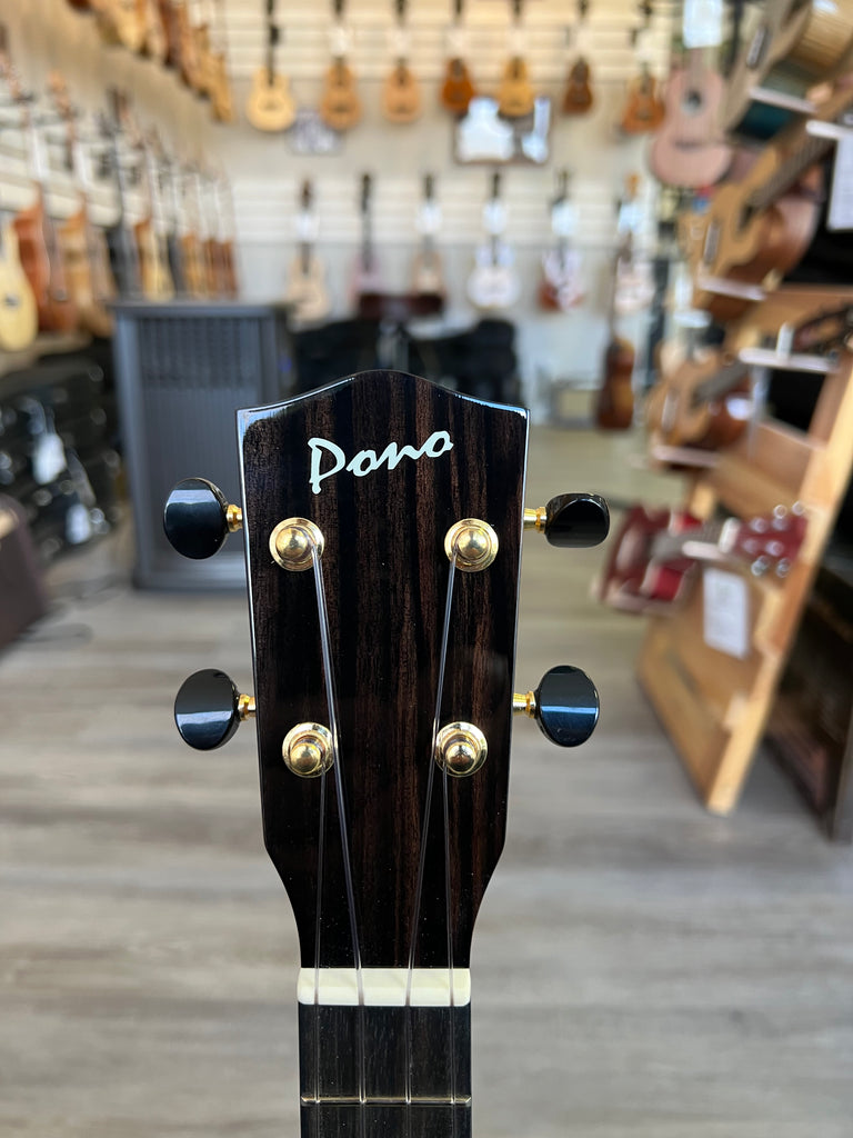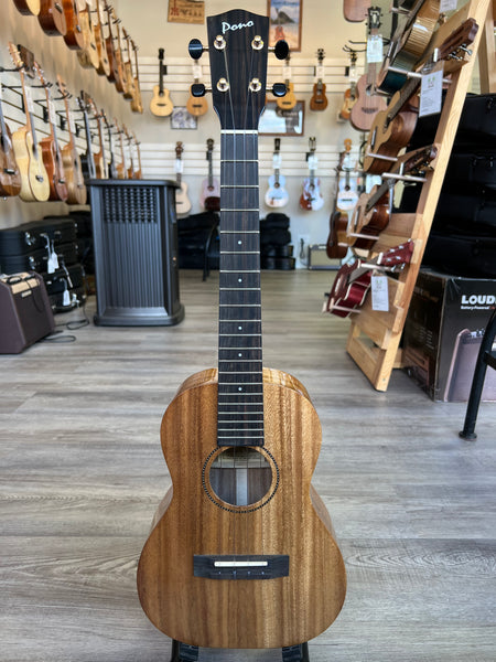 Aloha City Ukes is happy to be carrying Pono ukuleles. These are very high-quality ukuleles made under the Ko'olau name with their designs. The ATD-Tenor is an all-solid acacia wood tenor ukulele with a gloss finish. The tone is sweet and the playability is great. The Pono tenor and baritone ukuleles also come equipped with a dual-action truss rod which makes it easy to adjust as climates change. Aloha !!