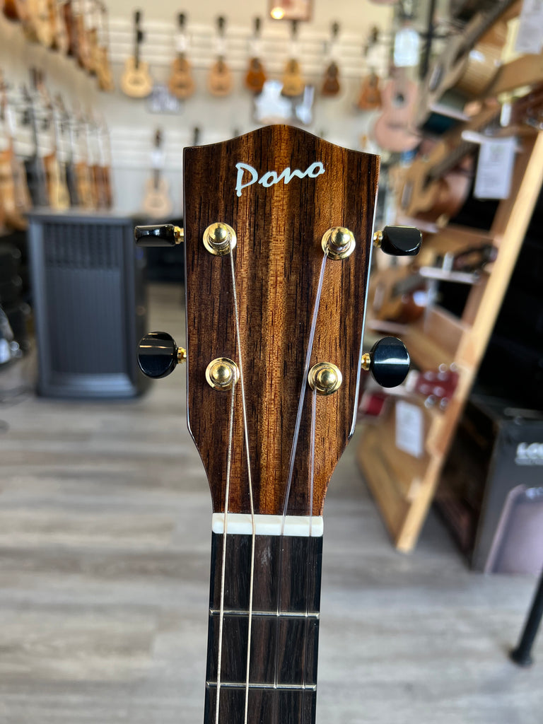 Aloha City Ukes is happy to be carrying Pono ukuleles. These are very high-quality ukuleles made under the Ko'olau name with their designs. The ABD Baritone is an all-solid acacia wood baritone ukulele with a gloss finish. The tone is sweet and the playability is great. The Pono tenor and baritone ukuleles also come equipped with a dual-action truss rod which makes it easy to adjust the neck as the climate changes. Aloha !!