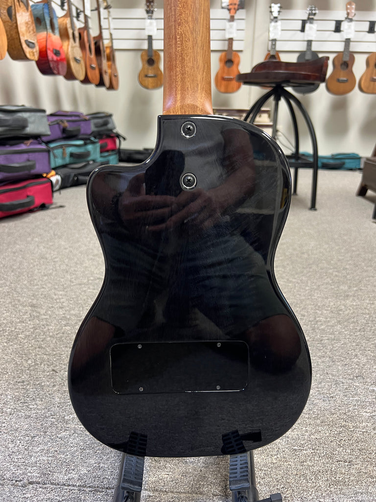 This amazing solid body electric uke features a solid chambered mango body with a passive Pono pickup. A simple volume knob is all you need to unleash the beauty of this electric uke. Feedback is not an issue with the chambered body which is why this model is preferred by a lot of performing musicians. The macassar ebony fingerboard on the radiused fretboard provide an ultra smooth playing experience. Aloha !!