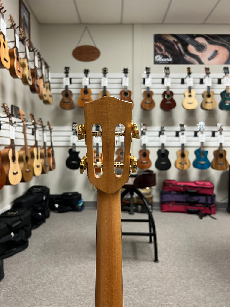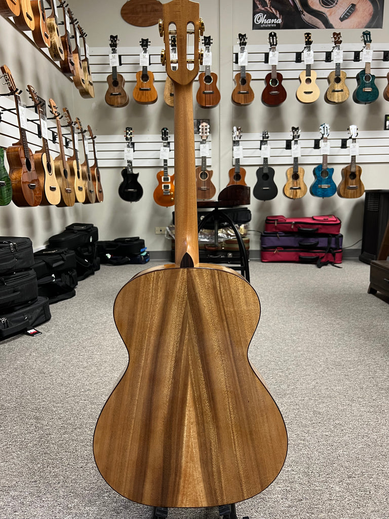 This big body baritone ukulele from Pono is really an amazing instrument. It's basically a tenor guitar that is set up with nylon strings and tuned D G B E. The large solid cedar top and acacia body provides a big, warm beautiful sound while the nylon strings are nice and easy on the fingers. Comes with a nice Pono padded case.
