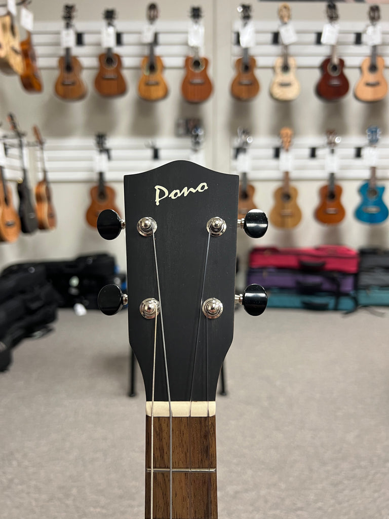Aloha City Ukes is happy to be carrying Pono ukuleles. These are very high quality ukuleles made under the Ko'olau name with their designs. The MB-K Baritone is an all solid mahogany wood baritone ukulele with a satin finish. The tone is sweet and the playability is great. The Pono tenor and baritone ukuleles also come equipped with a dual action truss rod which makes it easy to adjust the neck as the climate changes. Aloha !!