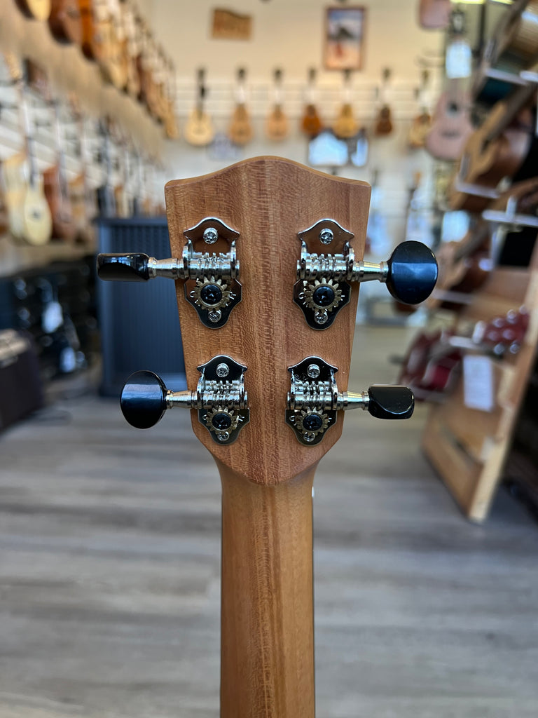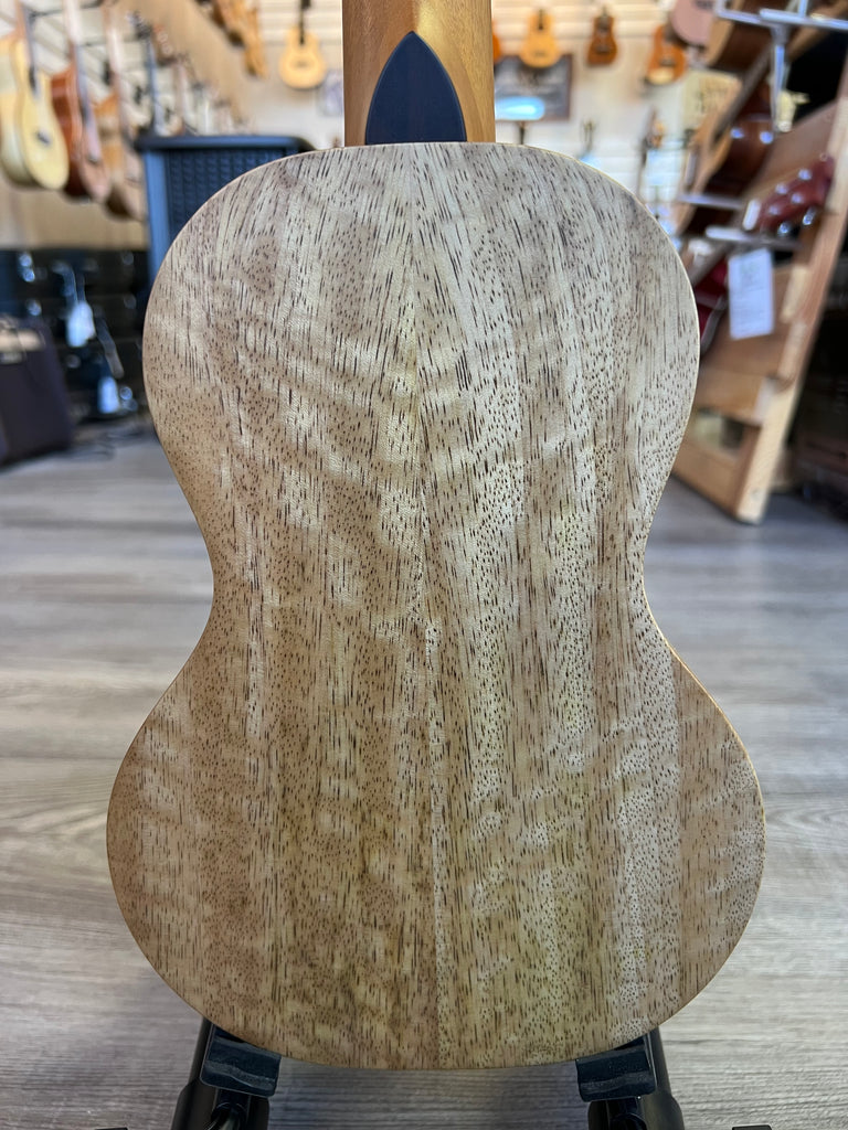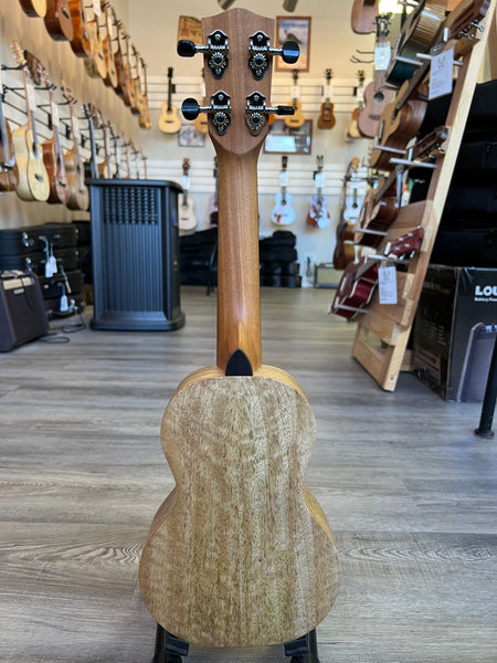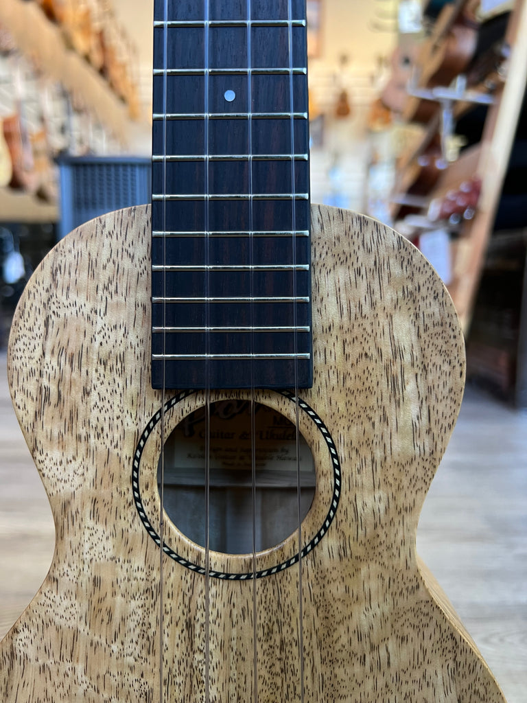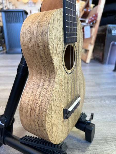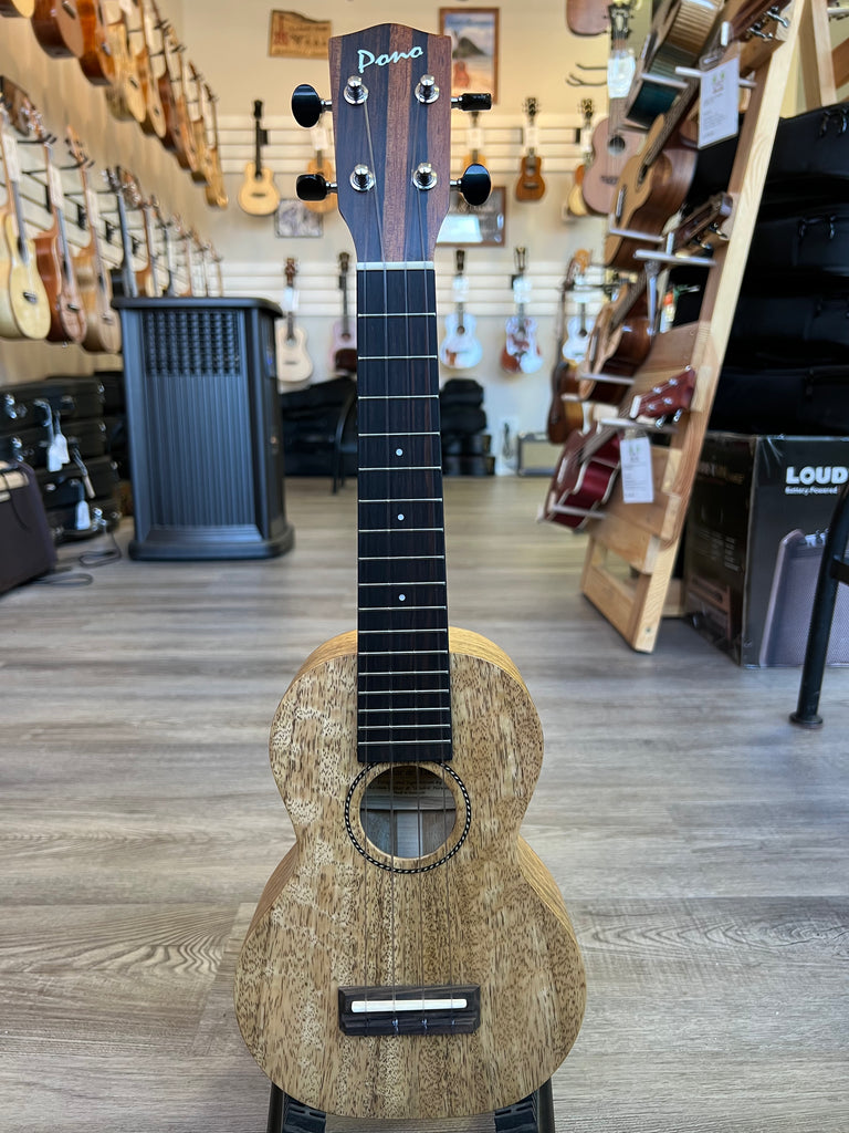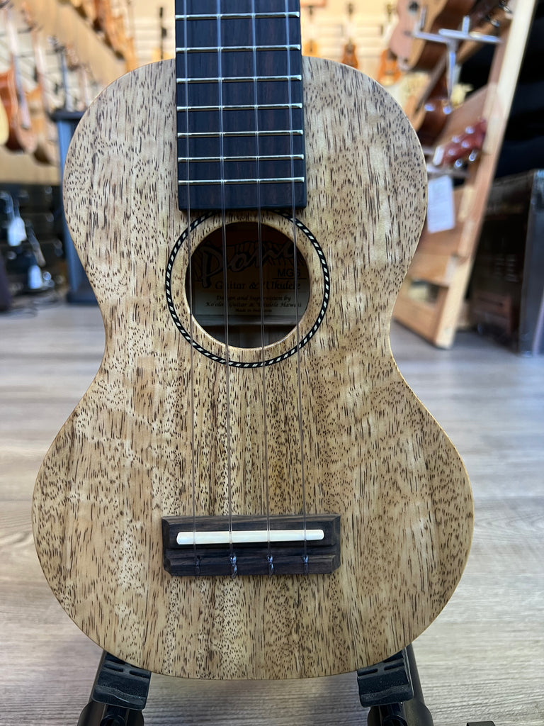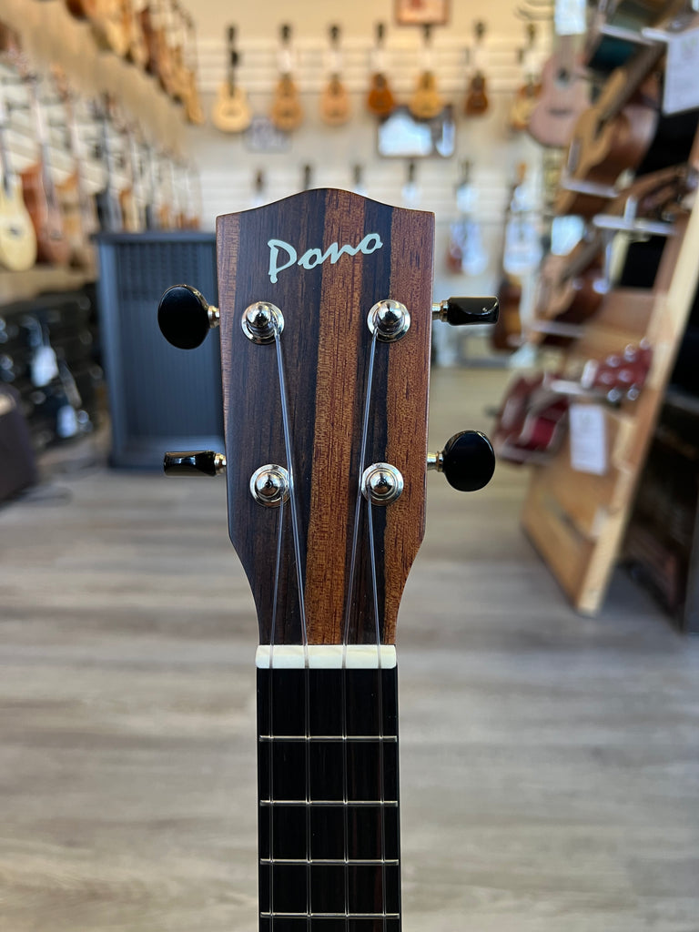 Great little soprano from Pono Ukuleles. This one features an all solid mango body to go along with the ebony bridge and fingerboard. The tone is very warm and classic Hawaiian ukulele sounding. The action is also great making it easy to play for hours. Aloha to that !!